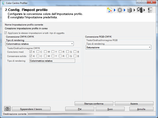 In [Conversione RGB-CMYK] - [Tipo di rendering], selezionare il tipo di rendering.