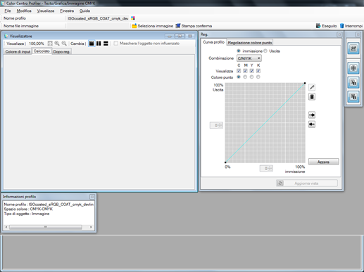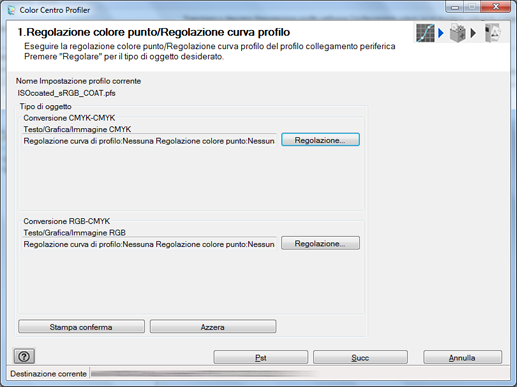 È possibile eseguire la regolazione colore punto/regolazione curva profilo per ogni oggetto CMYK/RGB (immagine CMYK/RGB, grafica CMYK/RGB e testo CMYK/RGB).