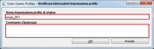 Se necessario, modificare [Nome Impostazione profilo di origine] e [Commento (Opzionale)].