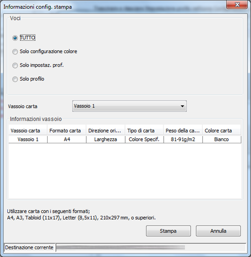 Stampare le impostazioni della destinazione.