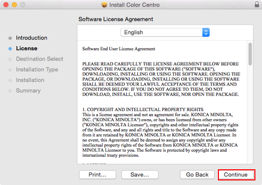 Confermare il contenuto. Quando si accettano tutti i termini, fare clic su [Continue].