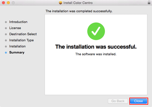 Quando è visualizzata la schermata Installazione completata, fare clic su [Close].