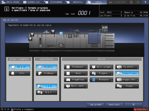 Un'icona rappresentante la modalità di uscita specificata è visualizzata in [Imp.di uscita] nella schermata [COPIA].