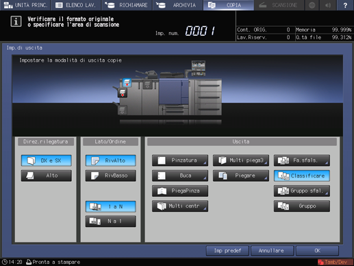 Un'icona che rappresenta la funzione specificata è visualizzata in [Imp.di uscita] nella schermata [COPIA].