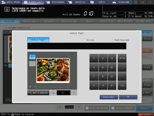 La schermata [Lav riserv] consente di gestire i lavori emessi. Per informazioni dettagliate, fare riferimento a Schermata Lavoro riservata.