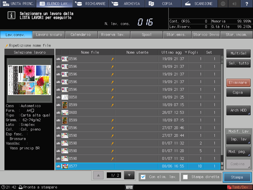 Premere la scheda [ELENCO LAVORI] per visualizzare la schermata [ELENCO LAVORI].