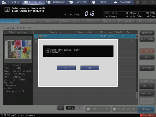 Il lavoro selezionato è eliminato e la schermata torna alla schermata [Conserva lavoro].