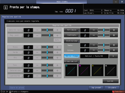 Premere in sequenza [Regolazione della qualità] e [Controllo densità colore].