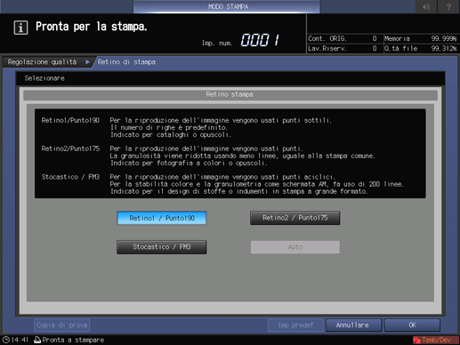 È possibile modificare il tipo di schermata in UTILITÀ. Per informazioni dettagliate, fare riferimento a Retino Personalizzato: selezionare il tipo di schermata.