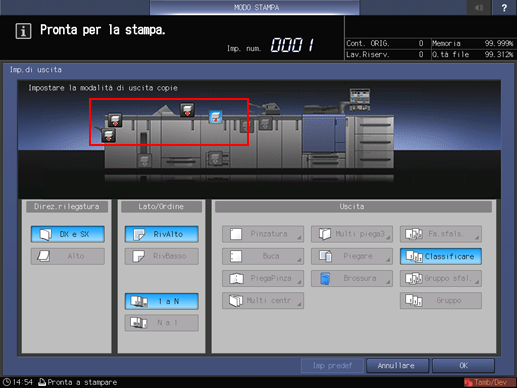 Selezionare il vassoio di uscita desiderato premendone il tasto, quindi premere [OK].