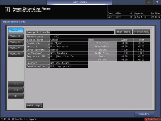 Premere [Chiudere] nella schermata [Impostazione carta] per tornare alla schermata [MODO STAMPA].