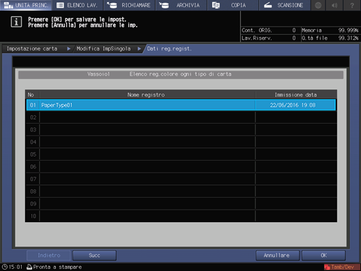 Premere [OK] nella schermata [Modifica ImpSingola] per tornare alla schermata [Impostazione carta].