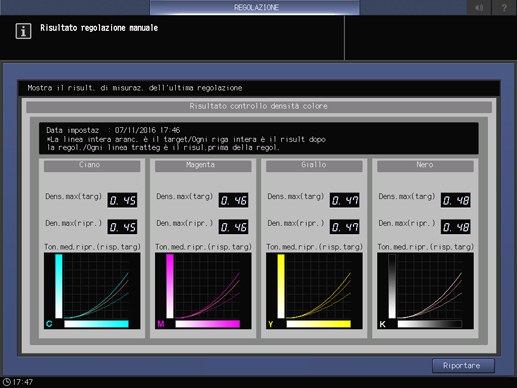 Premere [Riportare] per tornare alla schermata [Controllo manuale densità colore].