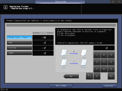 Premere in sequenza [Regolazione Finisher] e [Regolazione Piega in tre].