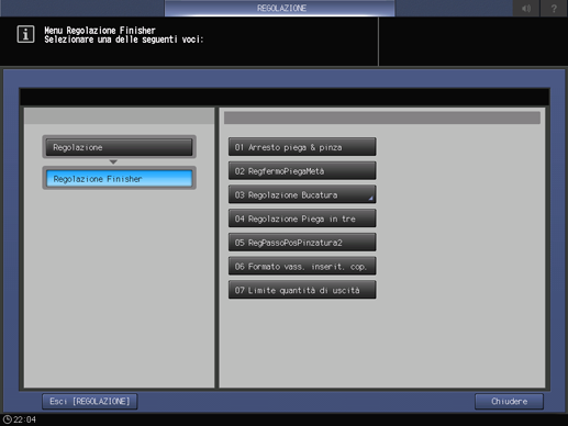 La schermata torna alla schermata [Menu Regolazione Finisher].
