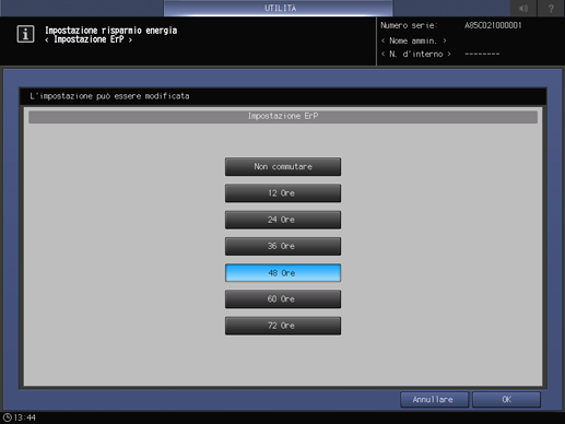 Per annullare la modifica, premere [Annullare]. In entrambi i casi, la schermata torna alla schermata [Menu Imp.risp.energ.].