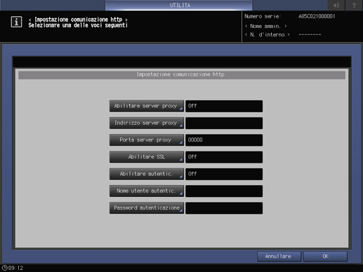 Premere [Impostazioni di rete] nella schermata [Menu Impost. amministratore], quindi premere [Impostazione comunicazione http].
