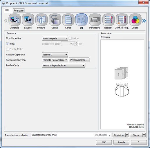 Formato carta copertina: Personalizzato (in larghezza 307 mm