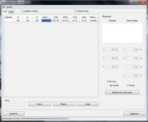 Specificare i valori dei colori di [Originale] e [Dopo regolaz] in [Regola], quindi fare clic su [Registrare].