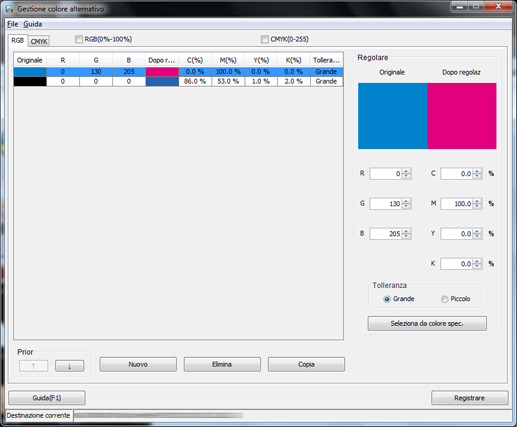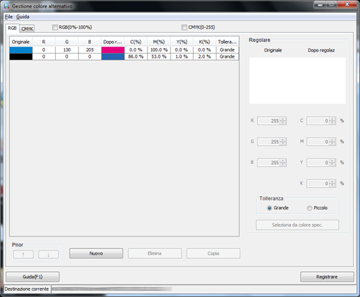 I colori alternativi sono visualizzati nella schermata [Gestione colore alternativo].
