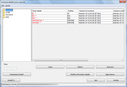 È visualizzata la schermata [Gestione tabella colore speciale].