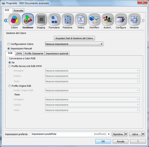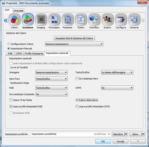 Si consiglia di registrare le impostazioni di stampa colore usate di frequente nella configurazione colore. (fare riferimento a Qualità immagine: registrare la configurazione colore.)