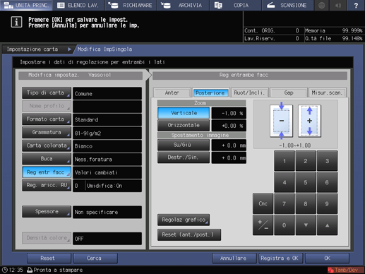 Selezionare il lato da regolare premendo [Anter] o [Posteriore].