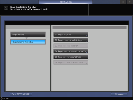 Premere [Regolazione Finisher] nella schermata [Menu Regolazione].