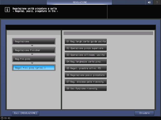 Premere [Regolazione posiz pinzatore] nel menu [Regol.fini.pinz.(princ)].