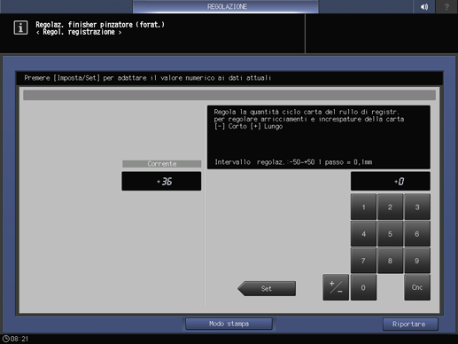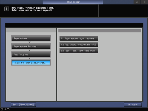 Premere [Regolazione registrazione] nella [Regol.finisher pinz.(forat.)].