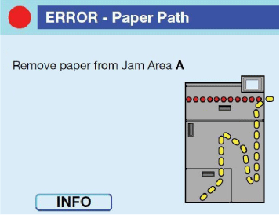 In caso di inceppamento carta nella Rilegatrice ad anelli automatica GP-502 durante un lavoro di emissione, il seguente messaggio sarà visualizzato nello schermo della stampante.
