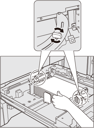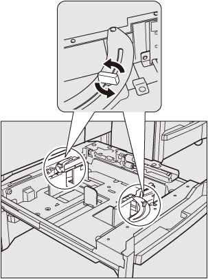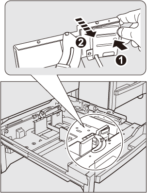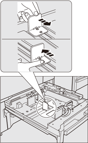 Accertarsi che la piastra guida posteriore sia allineata in modo sicuro alla carta. In caso di spazio tra la piastra guida posteriore e la carta, la macchina non è in grado di rilevare il formato carta corretto e potrebbero verificarsi problemi alla macchina.