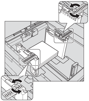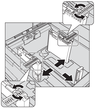Ruotare le due manopole di fissaggio della guida laterale delle piastre guida laterali in senso antiorario per allentarle.