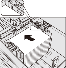 Accertarsi che la piastra guida posteriore sia allineata in modo sicuro alla carta. In caso di spazio tra la piastra guida posteriore e la carta, la macchina non è in grado di rilevare il formato carta corretto e potrebbero verificarsi problemi alla macchina.