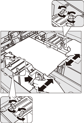 Allineare le piastre guida laterali anteriore e posteriore alla carta.