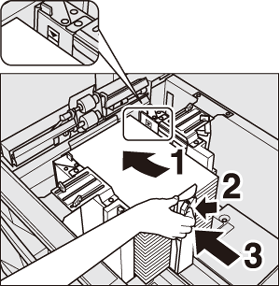 Accertarsi che la piastra guida posteriore sia allineata in modo sicuro alla carta. In caso di spazio tra la piastra guida posteriore e la carta, la macchina non è in grado di rilevare il formato carta corretto e potrebbero verificarsi inceppamenti carta o problemi alla macchina.