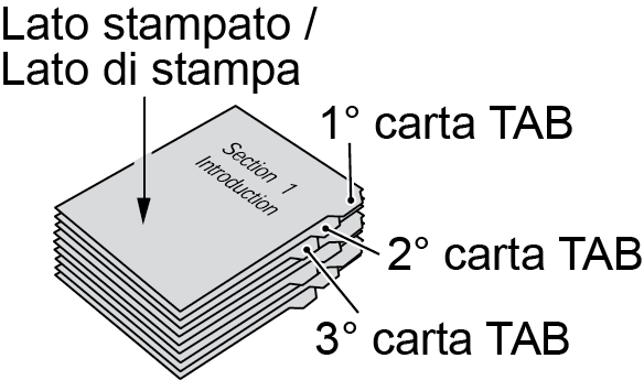 Posizionare la carta TAB nel vassoio unità alimentazione carta facendo riferimento all'illustrazione precedente.