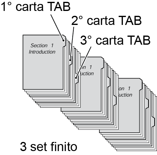 Esempio: 3 fogli di carta TAB inseriti in ognuno dei 3 set finiti (per un totale di 9 fogli di carta TAB)