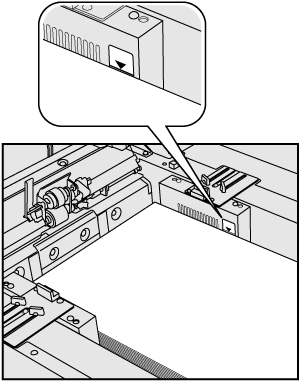 Accertarsi che la piastra guida posteriore sia allineata in modo sicuro alla carta caricata. Se lo spazio tra la piastra guida posteriore e la carta è troppo ampio o troppo stretto, potrebbero verificarsi inceppamenti carta o problemi alla macchina.