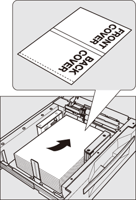 Quando si realizzano libri rilegati sul lato destro, caricare la copertina con il lato anteriore rivolto in alto, e con la testa situata verso il lato anteriore del vassoio. Le copertine caricate saranno rifilate sul lato sinistro quando vengono inserite nei libri.
