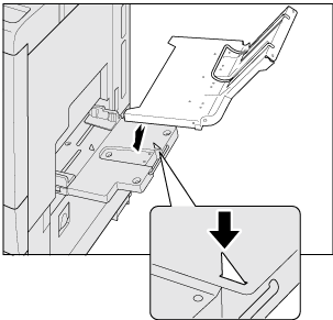Premere l'Unità vassoio banner MK-740 coperta oppure l'Unità di rinforzo del vassoio di uscita per banner MK-740m (vassoio di estensione dell'alimentazione) nella macchina.