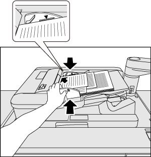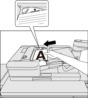 Non caricare oltre il limite rispetto alla capacità dell'alimentatore documenti od oltre la linea di limite indicata nelle guide originali; in caso contrario, l'originale potrebbe incepparsi o essere danneggiato o si potrebbero causare problemi alla macchina.