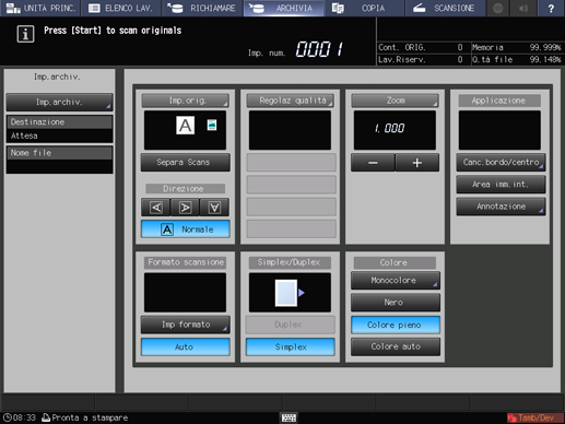 Per informazioni dettagliate sulla schermata [ARCHIVIA], fare riferimento a Schermata ARCHIVIA.
