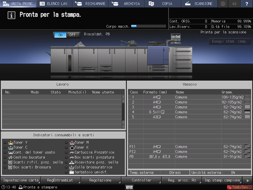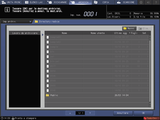 Premere la scheda [ARCHIVIA] sul pannello a sfioramento della stampante.