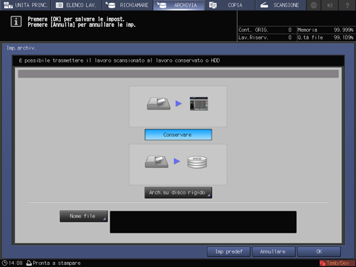 Come percorso di archiviazione, selezionare [Conservare] oppure [Arch HDD].
