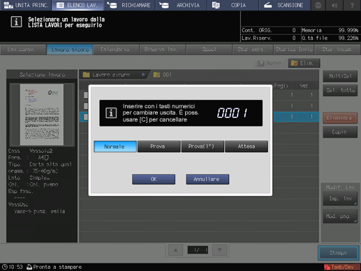 [Normale]: stampa i dati secondo il numero di copie specificato.