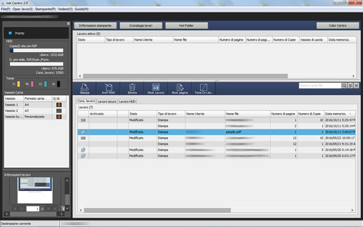 In alternativa, è possibile fare clic su [Conserva lavoro] - [Stampa] nel menu [Operazioni lavori].