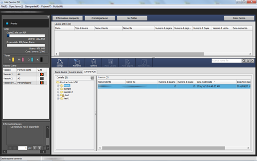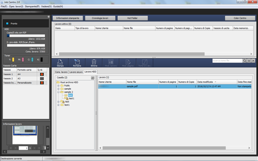 È possibile stampare un lavoro salvato sull'HDD utilizzando Job Centro.