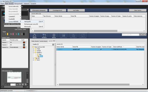 In alternativa, è possibile fare clic su [Lavoro HDD] - [Stampa] nel menu [Operazioni lavori].