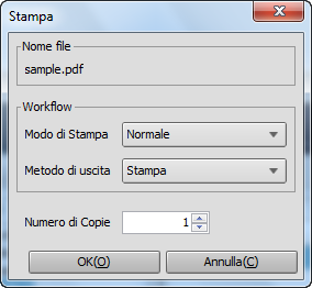 Selezionare [Modo di stampa] nella schermata [Stampa], inserire [Numero di copie], quindi fare clic su [OK].
